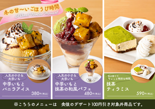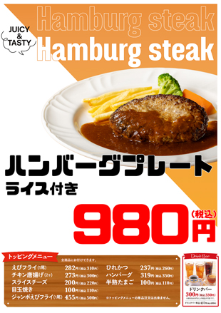 グランドメニュー※FC佐久店は一部内容が異なりますメニューを開く (PDF)※FC佐久店は一部内容が異なりますメニューを開く (PDF)ランチメニュー※FC佐久店は一部内容が異なりますメニューを開く (PDF)モーニングメニュー※佐久店では取扱っておりませんメニューを開く (PDF)キッズメニュー※FC佐久店は一部内容が異なりますメニューを開く (PDF)季節限定メニュー※FC佐久店では取扱っておりませんメニューを開く (PDF)おすすめメニュー※FC佐久店では取扱っておりませんメニューを開く (PDF)※FC佐久店では取扱っておりませんメニューを開く (PDF)平日(月~金)限定メニュー※栗田店/小島田店/長野運動公園店17:00~CLOSEまでメニューを開く (PDF)※上越北店17:00~CLOSEまでメニューを開く (PDF)おすすめデザート※FC佐久店では取扱っておりませんメニューを開く (PDF)