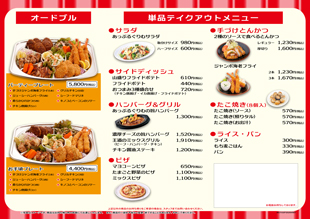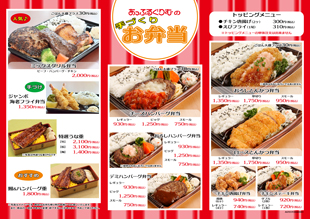 お弁当メニュー商品の一部を予告なく変更・終了する場合があります。予めご了承下さい。※FC佐久店は一部内容が異なりますメニューを開く (PDF)テイクアウトメニュー商品の一部を予告なく変更・終了する場合があります。予めご了承下さい。※FC佐久店は一部内容が異なりますメニューを開く (PDF)
