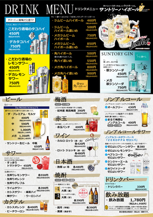 飲み放題メニュー